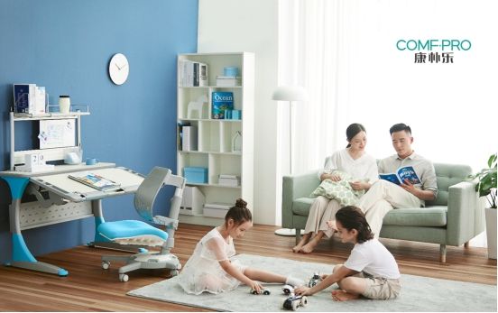 A:COMF-PRO 康朴乐品牌自 1984 年创立至今,专注于儿童家居用品的研发与制造,其中以儿童书桌椅为核心的产品,可以满足不同年龄阶段儿童的书写、阅读、绘画等多个场景的使用需求,辅助儿童正确坐姿,远离驼背及近视的产生。 康朴乐产品他始终秉持着以人体工学、安全、环保为核心的理念,坚持使用全球高品质元器件服务全球用户,比如使用了富美家美耐板,它具有耐磨、耐划、耐高温、易清理的一些特性,使用寿命更长,这种耐用的产品才能陪伴孩子成长、耐用的产品会更环保)。