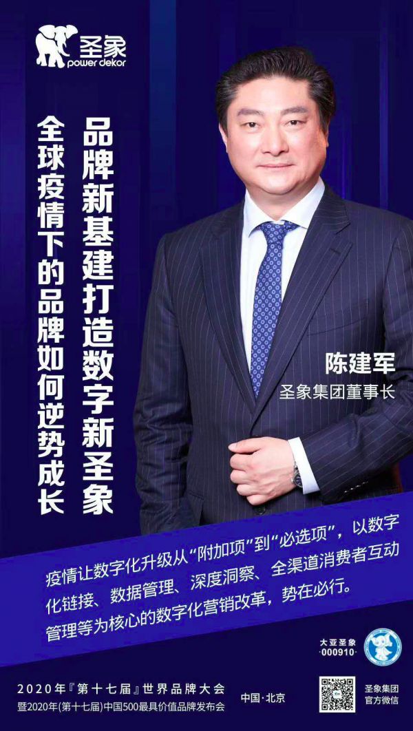 前不久刚刚落下帷幕的2020年《世界品牌大会》上,圣象集团董事长陈建军先生表示: