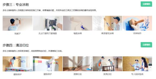 为满足用户多样性需求,多乐士将5天标准化服务体系的服务内容进行分门别类,包括墙面问题处理、趣味涂鸦墙、臻彩质感漆、3D刷漆壁纸、臻彩纹样、空间色彩方案等。具体服务流程统一按照墙面评估、搬移保护、专业涂刷、清洁归位等四步骤执行。
