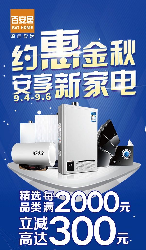 打造梦想家居,缔造美好生活。作为家居行业领航者,百安居懂您所需,为您所想。联盟国内外知名家电品牌,打响“安享新家电活动”,约惠金秋,与您一起开启美好家居生活。