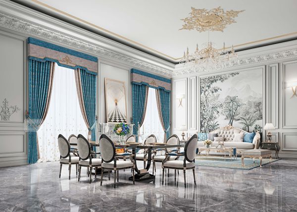 蓝与灰色搭配,出挑又不会过于张扬,适用风格是轻奢现代、北欧简约、现代法式、新古典风格等;适合放在客厅、卧室、书房、餐厅、茶室等各种家居空间。