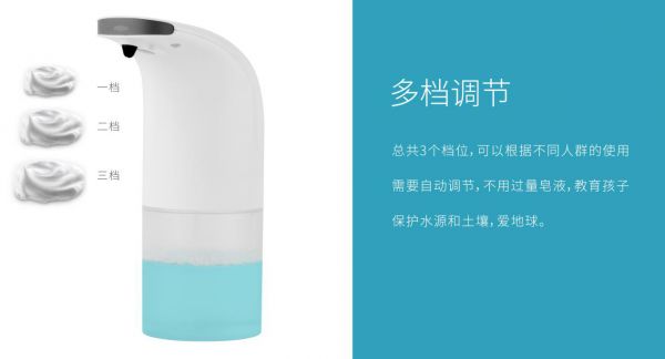 “少一次接触,多一份健康。”Vcare儿童洗手机共有3个档位,爸爸们可根据孩子的使用需求自动调节,在把小手清洗干净的同时不用过量使用皂液可节省宝贵的水资源,既可以教育小孩保护水源和土壤,又可以帮助小孩将小手清晰干净,寓教于乐会比讲道理更容易接纳并且铭记。