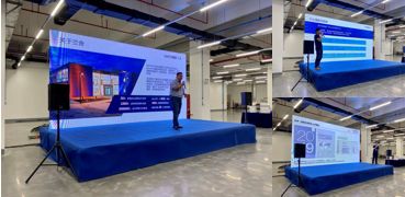 在参观过兰舍工厂之后,买家团齐集活动会场,实地聆听兰舍工作人员演示讲解兰舍的发展历程与新风净水全系列产品。