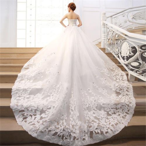 2、婚纱还有一种就是拖尾长裙,这种婚纱给人一种的感觉非常奢华,而且收腰设计也能显得新娘有好的身姿,纤细的腰令人羡慕。
