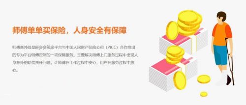“师傅意外险”是匠多多·筑家平台与中国人民财产保险有限公司(PICC)合作推出的专为平台师傅定制的一项保障服务。主要解决师傅上门服务过程中出现人身意外的赔偿责任问题,让师傅在工作过程中更安心,用户更放心。伴随着服务升级,这些保障将会继续被延续和深化。