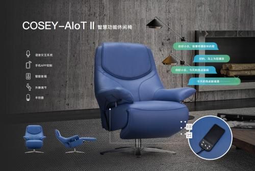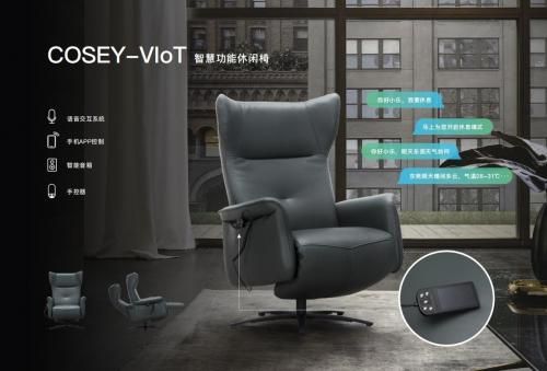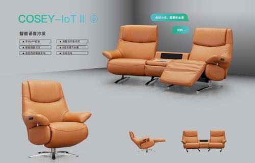 此次展会推出的智能语音沙发Cosey-IoTⅡ是在现有的智能单椅基础上进行技术革新,衍生为更加符合“千禧一代”家庭生活习惯的智能双人沙发。Cosey-IoTⅡ智能沙发支持物理按键及APP进行沙发控制,消费者可根据自身的坐姿或者躺姿需求,任意调节沙发头部和腿部倚靠部位的角度。