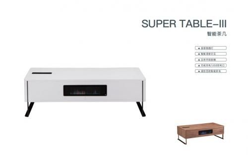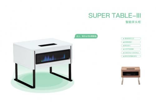 新一代智能床头柜SUPER TABLE-III与之前的智能床头柜相比,在造型上更加小巧且更具时尚设计感。床头柜表面上方配备了触控面板及无线充电板;中间部分内置360°环绕音响系统以及全新升级的音感氛围灯,在播放音乐的时候氛围灯会随节奏舞动,科技感十足;底部搭载了人体感应灯,消费者夜晚下床时可自动感应并亮起,再也不用摸黑找开关上洗手间了。