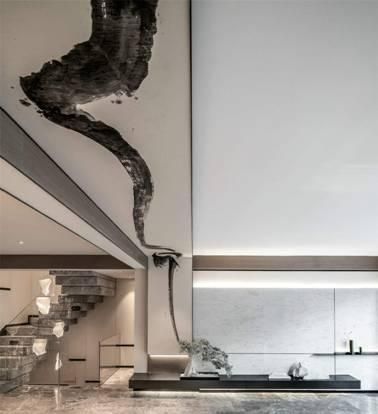 空间以大开大合的设计手法划分空间,以精致灵动的线条勾勒细节,设计师充分领悟中国书法至高瑰宝"瘦金体",以书法的意境和手法融汇空间以细节。至瘦而不失其肉,为当代精神注入新的理解与内涵。