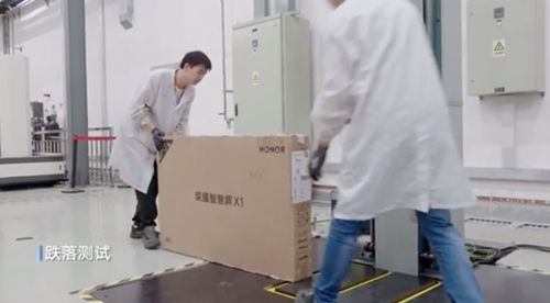 除了生产线的自主研发,在产品的质量上也严格把控。荣耀用做手机的思维和态度去生产智慧屏,每一款荣耀智慧屏问世之前都会有严苛测试。比如跌落测试,传统厂商只对电源板做可靠性测试,而荣耀会在电源板、主板,包括整机等等都要做可靠性测试。包括传统厂商可能不做或者只做半小时的老化测试,荣耀会做两小时。不断的深度优化,来降低故障率发生,不断的通过问题推倒出需要改进的地方。