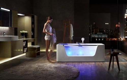 使用智能语音控制系统产品可实现花洒、龙头进出水、开关灯光、开关水力按摩、开关气泡按摩,浴缸的每个功能都能通过语音来实现。产品还可以远程APP控制,在下班的路上远程操控浴缸放水,回家时浴缸的水已经放满了,操作很简单、方便快捷。