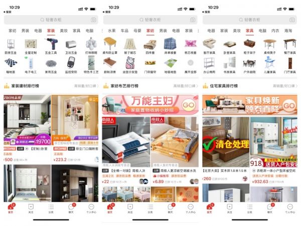 阿里、京东作为国内电商的排头兵,不仅要保持时刻警惕守护自己的主场,还要应对新对手的进攻。2015年成立的拼多多在五年的时间里一跃成为电商三巨头之一,同其他两家平台相比,拼多多在家居领域的探索更为“低调务实”。