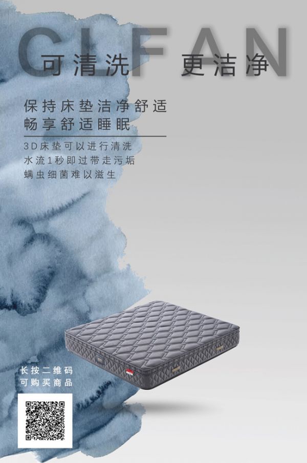 同时也也是一款绿色无污染可回收进行分解,环保性能高,可水洗的床垫。在实验台上水流穿过3D高分子立体支撑材料1秒即过,优越的透气透水品质让床垫里的螨虫细菌难以滋生,梦洁家居致力给消费者一个绿色健康的好睡眠。