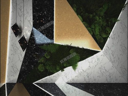 几何拼接效果,加上灯槽和绿植的组合点缀,