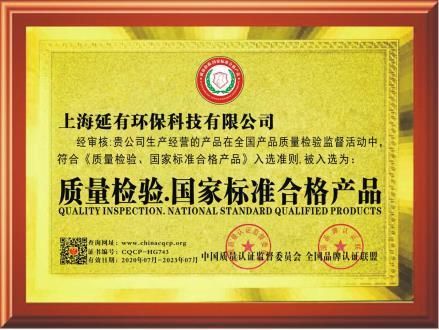 图/延有环保系列产品被评获“质量检验.国家标准合格产品”