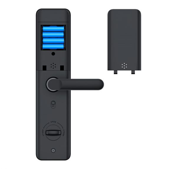 在门锁供电续航能力上,“智客一代”采用了4节5号碱性电池,正常可持续使用1年。如遇突发电量情况,“智客一代”提供了紧急充电口,用户可使用充电宝短时供电将门打开,完全不必担心会被锁在门外。