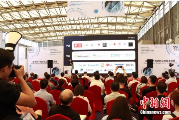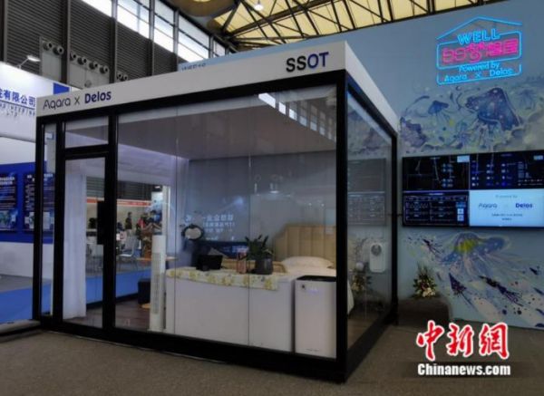 上海国际智慧办公展(SSOT)在上海新国际博览中心举行。此次展览中,一间由四面玻璃包围的模拟家居演示房尤其引人注目。通过生活的起居场景演示,向观众展示了智能让生活更健康和绿色,同时给人带来关怀的理念,吸引不少现场观众驻足。