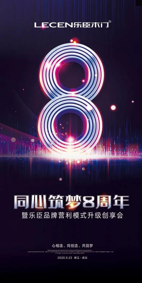 2020年9月23日,乐臣木门将在浙江武义举行2020年乐臣同心筑梦八周年庆典暨品牌升级营利创享会。届时,乐臣木门全新战略规划和各大战略合作将盛大揭晓,此外,乐臣木门将在行业再度发声,打造终端营利「四大天王」的运营模式。