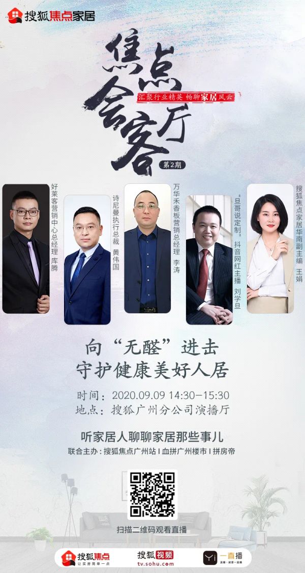 9.9搜狐直播间,听好莱客、诗尼曼、万华、刘学旦齐论无醛热