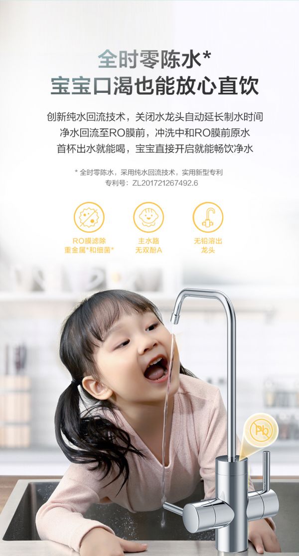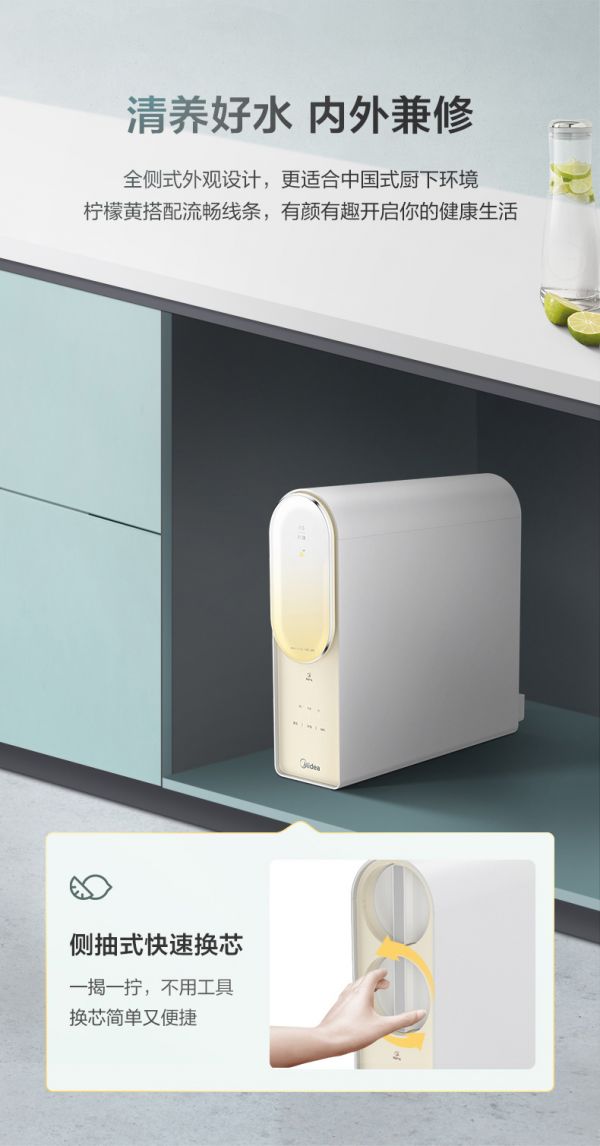 美的净水不断深入洞察用户使用偏好、功能效果、以及使用感受,针对消费者在使用净水器过程中的痛点,深耕技术研发,自我突破与颠覆,于9月9日在天猫平台全新推出「美的长效零陈水净水器轻柠T800」。通过水系统的改进,行业革命性突破鲜活水技术,真正做到了直饮零陈水,从源头解决了大通量净水器“首杯水TDS值高”的通病,给母婴群体提供了极致的用水保障,“喝”护母婴饮水健康,全时段都可享用健康鲜活水。