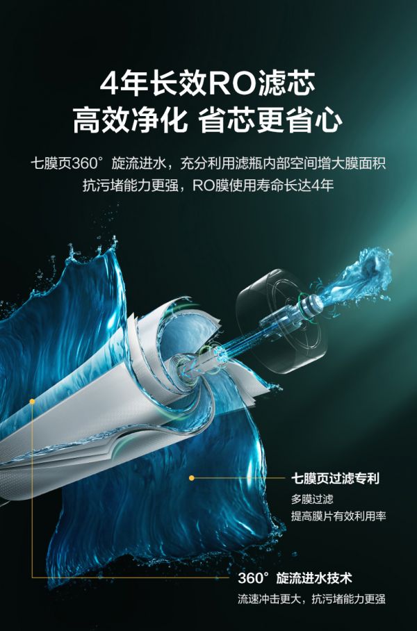 【 极致双芯高效净化 RO 滤芯超长续航 】