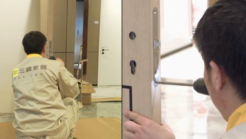 定制类家居产品非常容易在安装环节出现各种各样的问题,如实物尺寸不对、安装效果与设计图纸不符、工人安装技术不熟练延误工期等。在对三峰木门全屋定制进行本项测试时发现,整体来讲其样品与图纸相符,产品无尺寸偏差,到货时无破损,产品部分过关。工人的娴熟度也值得称赞,经验丰富,对各种产品的处理安装得心应手,整个过程快速且专业。