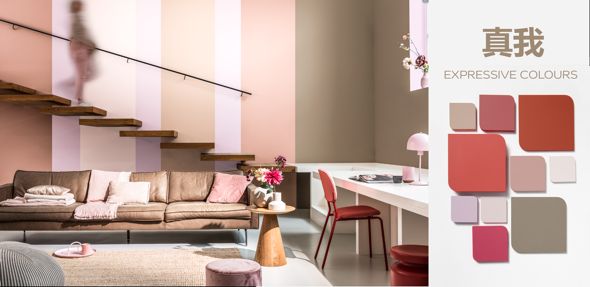 融合了经典与当代色调的传承色盘,以黄色和赭色为主,辅以中性色和砂陶棕作平衡,打造出新旧交融的家居空间。它活力不张扬,经典又现代,为家居空间带来平衡之美。真我色盘则是一组鼓励人们勇敢做自己的色彩。不同深浅的粉色和红色完美交融,而砂陶棕特有的温暖基调,能够完美衬托这组波普色彩,为空间带来平衡又和谐的氛围感,为家注入更多活力能量。