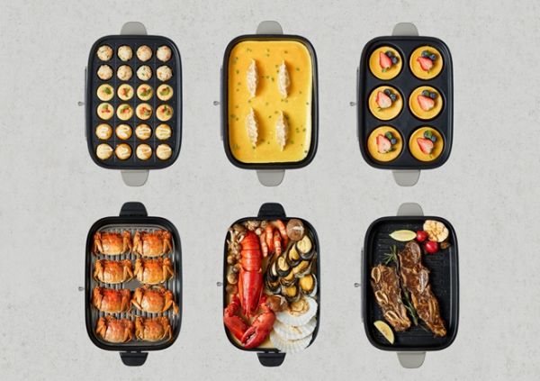 每天起床第一餐,用六圆盘做太阳饼、汉堡、松饼…家人营养早餐轻松解决;平时在家少点外卖,用3L深煮锅多做点菜,火锅、煲汤、麻辣锅、关东煮…少油少烟,健康卫生,还能享受动手的乐趣;家常便饭不再为难,烹炒、焗烩、煎烤…一个平烤盘便能完成所有;想吃烤肉、牛排,一个煎烤盘就可以满足,凹凸坑纹能滤出多余油脂,轻食少烟,新手小白也能煎出“大师级纹路”;小朋友嘴馋了,一个丸子盘轻松“制服”,章鱼小丸子一口一个,不仅好吃还更具趣味;蒸锅可以蒸鱼、蒸蛋、蒸蟹、蒸饺子…轻松还原本“蒸”,满足你的中国胃。