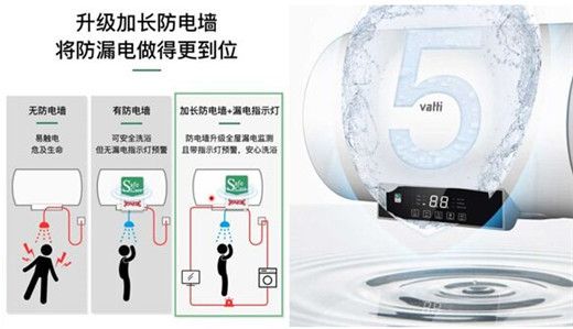 不必忧心!华帝这款电热水器升级加长型防电墙,在人体与水之间增大电阻,即使不拔插头,也能边洗边加热,孩子独自洗澡也可以放心。防电墙不仅升级全屋漏电系统,还可以实时监控电路,主动保护,且带指示灯预警,让家人沐浴更放心。