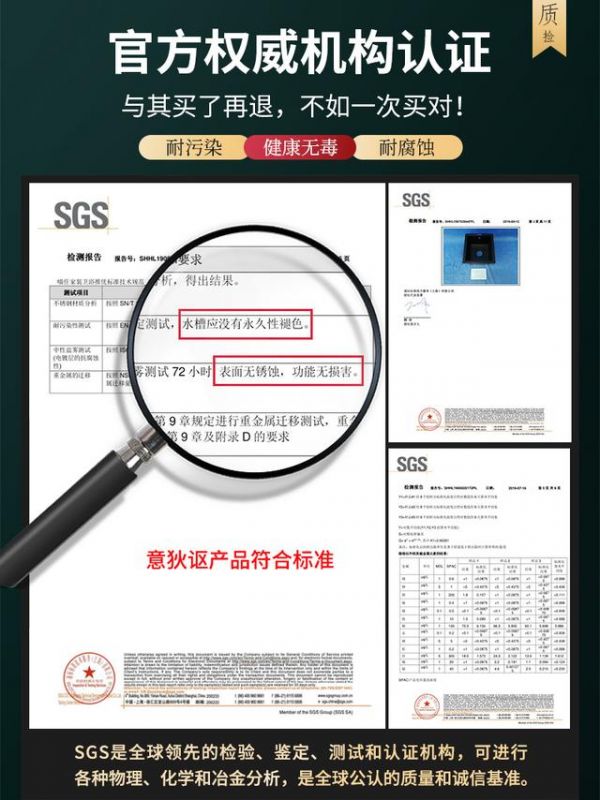 最后必须提及的意狄讴厨卫的第三大特色是石英石水槽环保标准高,产品更健康环保。