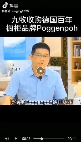 今日,一条关于九牧董事长林孝发的视频在微信朋友圈流传,据视频,林孝发在镜头前表示:“九牧收购了世界顶级的品牌poggenpohl德国橱柜,就是橱柜中的劳斯莱斯,所以这也是让九牧更快国际化。”