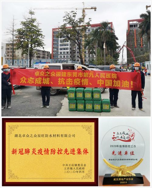 2020年初,一场突如其来的新冠肺炎疫情,给国家经济、企业经营、家庭生活带来了严重的冲击。在严峻的形势下,卓众之众挺身而出,组织施工小组奔赴疫情抗战大后方医院——东莞市第九人民医院,进行防水援建。经过20多天的奋战,保质保量地完成了医院的防水防渗工程建设,得到了医院承建方中建五局的认可并颁发了感谢信。
