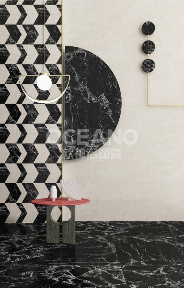 想要一场黑色盛宴,欧神诺宝格丽黑可以满足你。经典黑色融入摇滚金属元素,神秘、魅惑又迷人。水刀拼花刻画出向右前进的指示、半圆宝格丽黑紧跟其右、还有大胆创新的串串拼花。在这里,黑色,不只是黑色。