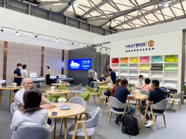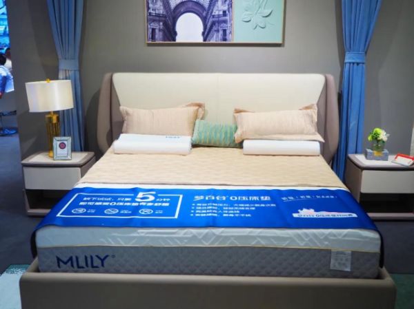 Mlily梦百合携0压系列产品在两大展会亮相,场馆简约大气,为消费者展示了0压、深睡的品牌理念。