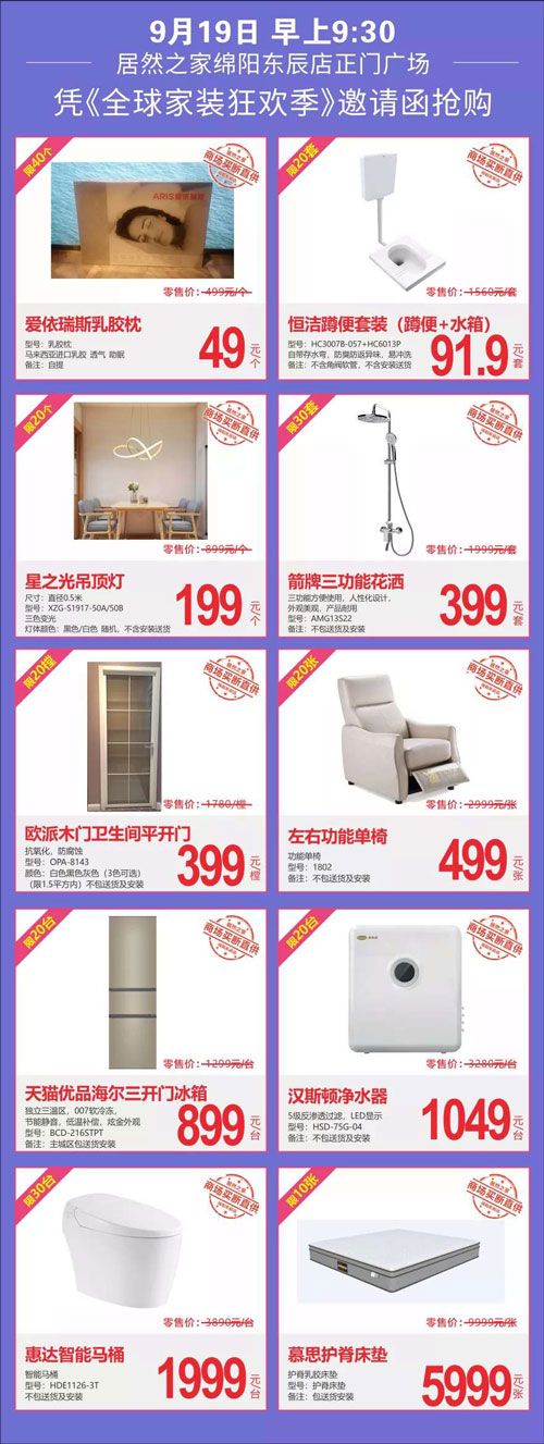 9月13日(本周日),居然之家家装狂欢全城瞩目,和斯琴高丽约会,赢4999元免单,抽5g金条...狂欢盛宴尽在居然之家绵阳东辰店,诚邀您品鉴!