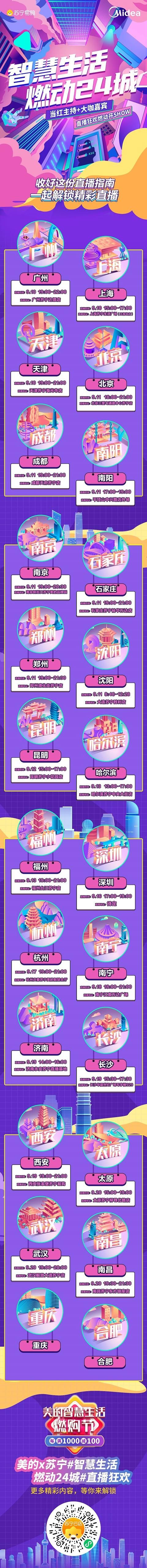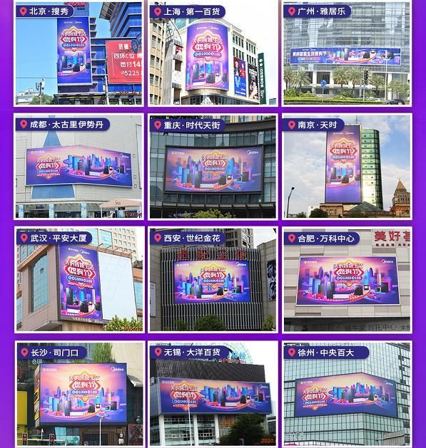 不知道各位小伙伴有没有注意,从9月1日开始,美的#美的智慧生活燃购节#就已经陆续登陆了北京、上海、广州、成都等12个城市的网红大屏,将促销的信息全面扩散到线下,这样不仅让更多的美粉可以参与到这场狂欢燃购之中,也让美的苏宁的线下门店获得高强度曝光,给线下门店注入全新的活力,成功构建出线上线下的商业闭环。同时美的的12城地标大屏噱头满满,在全国范围形成整体性性,人流密集区域曝光强劲输出促销卖点,为美的智慧生活燃购节造势预热,也为整个活动带来可观的流量。