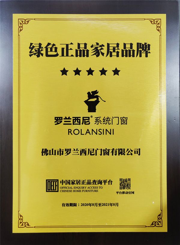 罗兰西尼以绿色环保的门窗产品和聚焦品质生活的态度,摘得“绿色正品家居品牌”称号!