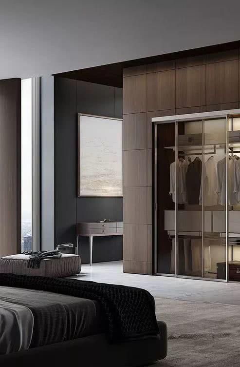 推拉门开门不占空间,拿取衣服方便,但是推拉门不能同时打开,而且推拉门轨道容易积灰,五金配件也较贵。平开门可以同时打开所有门,颜值高,可以做到顶,显得柜子简约好看。如果担心占用空间,可以门板宽度可做到最窄30-40公分,拉开柜门也不会占用太多过道空间。平开门却只需要几个五金铰链和抽屉滑轨即可,构造简单,能省掉不少五金费用。