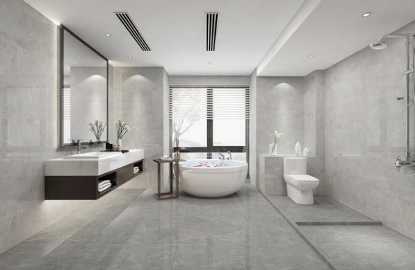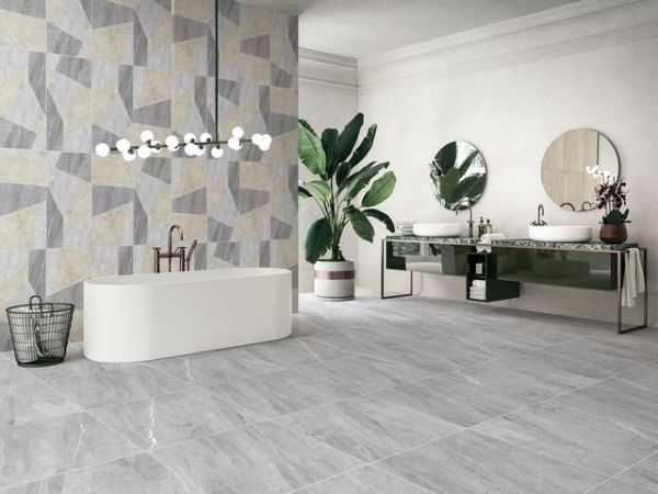 纹理粗犷的灰色系瓷砖应用于卫浴空间中,使居室处处都是惊喜,一石多面,片片不同,却又和谐相融,加上自然光线的引入,确保了沐浴的舒适度和明亮的视觉感。