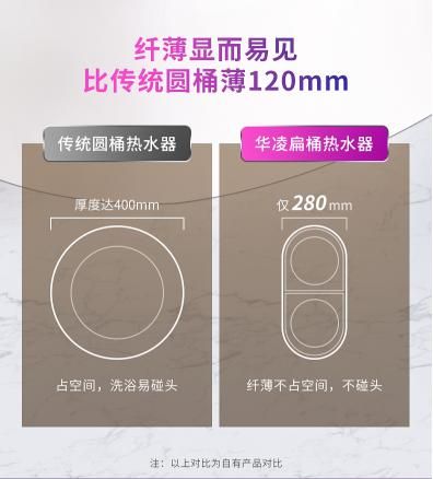 日常比较常见的圆桶热水器厚度一般为400mm,笨重又占空间,挂在墙上如果高度不够还容易碰到头,沐浴时总感觉有个庞然大物悬在头顶,对小空间的沐浴体验非常不友好,而华凌Y3电热水器仅有280mm的扁桶机身,不仅减轻墙体受力,更能有效释放空间,避免碰头,视觉上更加宽敞开阔,降低热水器的存在感,让沐浴的过程更加放松舒适。