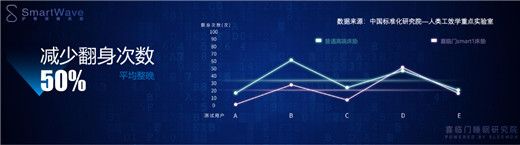 试验证明,通过实时改变床垫的硬度,对睡眠效果的提升是显著的。据中标院人类工效学实验室实验数据,使用Smart Wave护脊深睡系统入睡,整晚翻身次数减少50%,平均深度睡眠时间提升17分钟,脊椎曲线健康度得到大幅改善,睡眠质量有效提升。