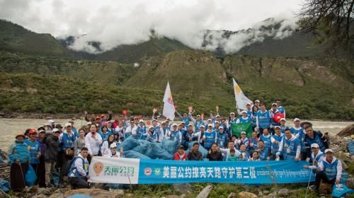 美丽公约创始人史宁介绍,从2015年开始,美丽公约发起了一项接力清理进藏公路沿线垃圾的公益行动——擦亮天路。参与者对藏区的垃圾问题进行了详细的调研,完成了“宣传动员—捡拾清理—分类集中—转运回收—粉碎包装—运回内地—加工原材料—监管公示”八个环节的闭环,“整个过程所需要的成本平均到每个饮料瓶上是0.5元。”借由这个契机,史宁带队发起了“守护第三极——0.5元计划”,无论身在何处,只要通过公众网络募捐平台为美丽公约捐赠0.5元,就可以帮助一个饮料瓶从西藏的雪山、湖泊、河流、牧场等地捡拾回收,循环使用。此外,美丽公约还成立了西藏地区志愿者服务队,自发的承担起旅游垃圾分类回收的任务,“希望通过他们的行动促进藏地居民提高环保意识、保护自然环境起到极为有效的作用,目前我们已经在西藏建立了50支志愿者服务队,近5000名美丽公约志愿者,每天都有清理行动在开展。”
