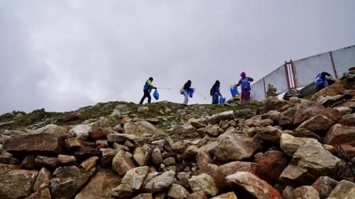 “我们想改变这样的状况!”作为这次引领者行动的领队,夏伯渝的身后是由百位文化名人和商界精英组成的“引领者”队伍。在西藏自治区旅游发展厅的牵头下,这场将持续4天的引领者行动形成了一股“环保风暴”,百位“名人”和当地志愿者一同,以捡垃圾、研讨会、公益徒步等形式展开活动。