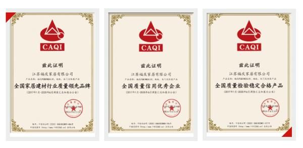 自1996年成立以来,福庆家居凭借优秀的产品口碑和服务质量,已经获得了板材十大品牌、中国驰名商标、国家高新技术企业、ISO9001国际质量管理体系认证、中国环境标志产品认证、政府绿色采购清单入选品牌等相关荣誉。多项奖项的获得,是福庆产品用质量筑起品牌生命线的重要体现,也是福庆坚持产品与服务质量诚信契约的实力见证!