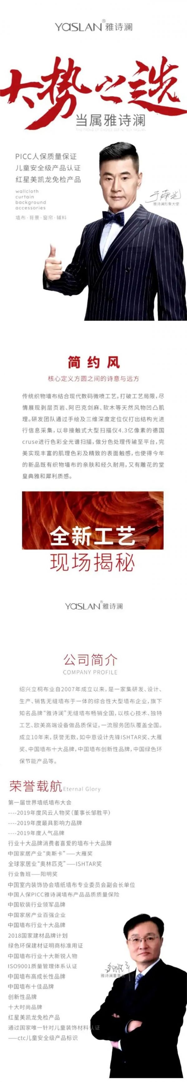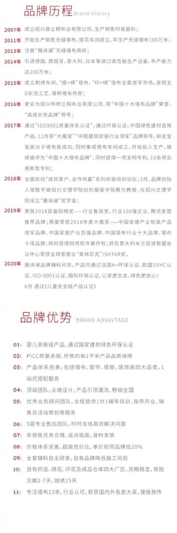 作为墙布全产业链工厂品牌,雅诗澜支持墙布批发和墙布代理,将经销商利益放在第一位,为家人们送去众多福利!