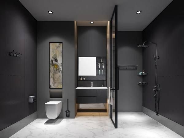 卫生间的色调选择对于美观度也非常重要,选择不好很容易拉低卫生间的质感。在色调方面,如果不想出错就以简洁为主,用黑白灰调的配色最优。