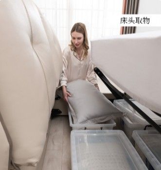 自主研发平移储物,加大储物空间,解决小户型收纳难题。储物床平移打开后,四面都可以轻松取放物品,方便轻松捡起床底掉落物品,方便通风晾晒,保持卧室的干爽洁净。