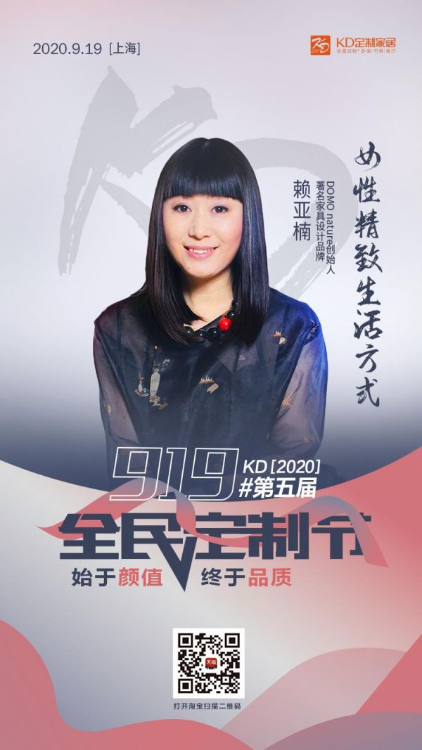 KD全民定制节一直致力于打破消费者和设计师的界限,实现彼此之间实实在在、真真切切的零距离交流。当天的活动现场,著名家具设计品牌DOMO nature创始人赖亚楠女士将为大家解读女性精致生活方式。