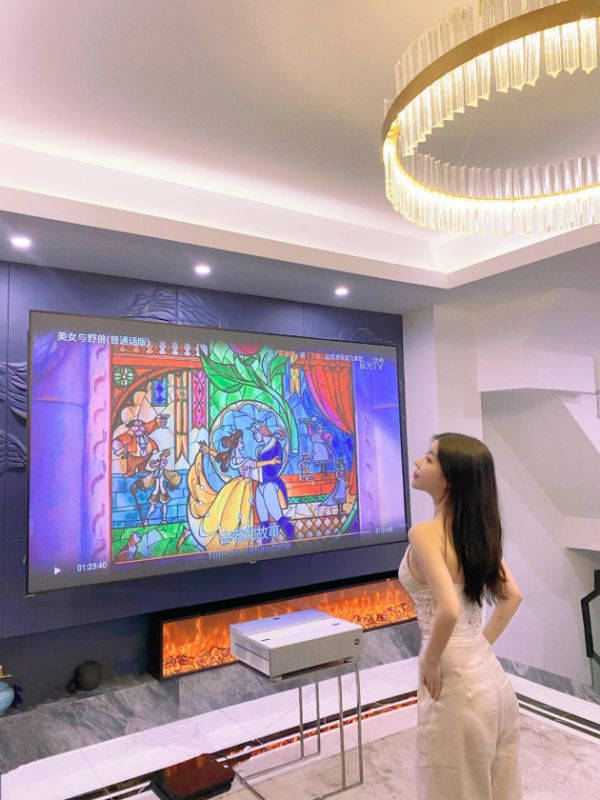 反观,激光电视亮度高,一般在2000流明以上,加上抗光屏幕,有效减少环境光干扰,画面整体视觉亮度获得肉眼可见的提升。用户@夜明珠提供的使用情景图,确实不难看出配备抗光屏这感觉就像是给画面打一针“强心剂”,焕发出明媚光彩,在波澜不惊的灰色空间里,它就是曙光和心动。此外,激光电视本质是超短焦投影机,将其放在电视柜上,就能打满屏幕。对于想要组建家庭影院却没有提前规划线路的用户来说,激光电视能免去对装修方案的改造。原来,想要一场酣畅淋漓的电影之旅,比想象中的更简单。