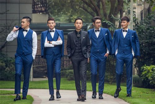 伴郎的服装不要比新郎喜庆,因为新郎才是主角,伴郎可以穿深色西装或者休闲一点的,但千万不要穿礼服。