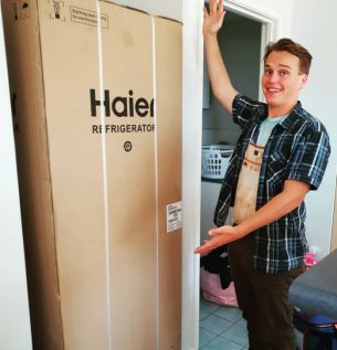 当地时间9月16日,澳大利亚昆士兰州的网友Ben在“随手拍”海尔活动网站上传了一组照片。从图片中可以看出,新买的冰箱与墙上预留的位置刚好吻合,冰箱的包装箱还没来得及拆封,Ben开心的与它合影留念,并称其为“生活小帮手”。